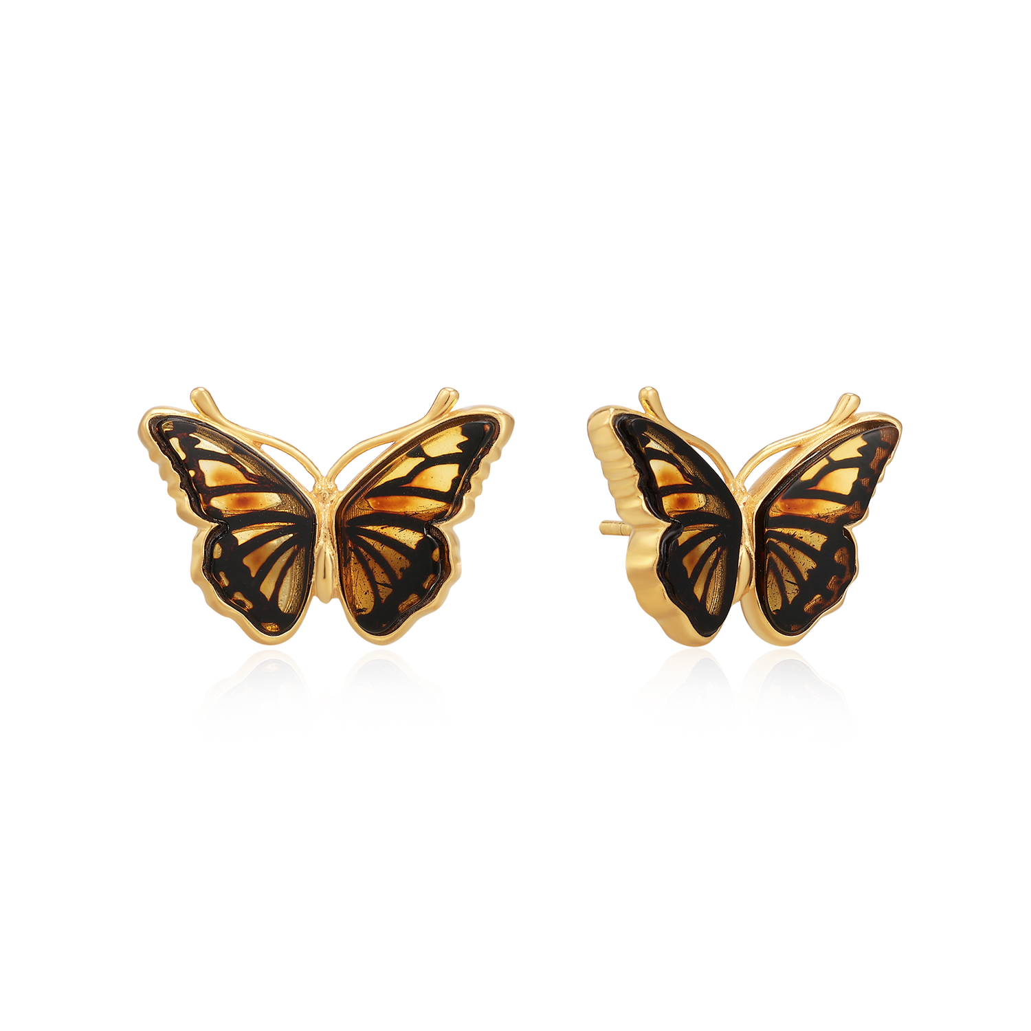 Sølvforgyldt ørestikker sort sommerfugl med rav.