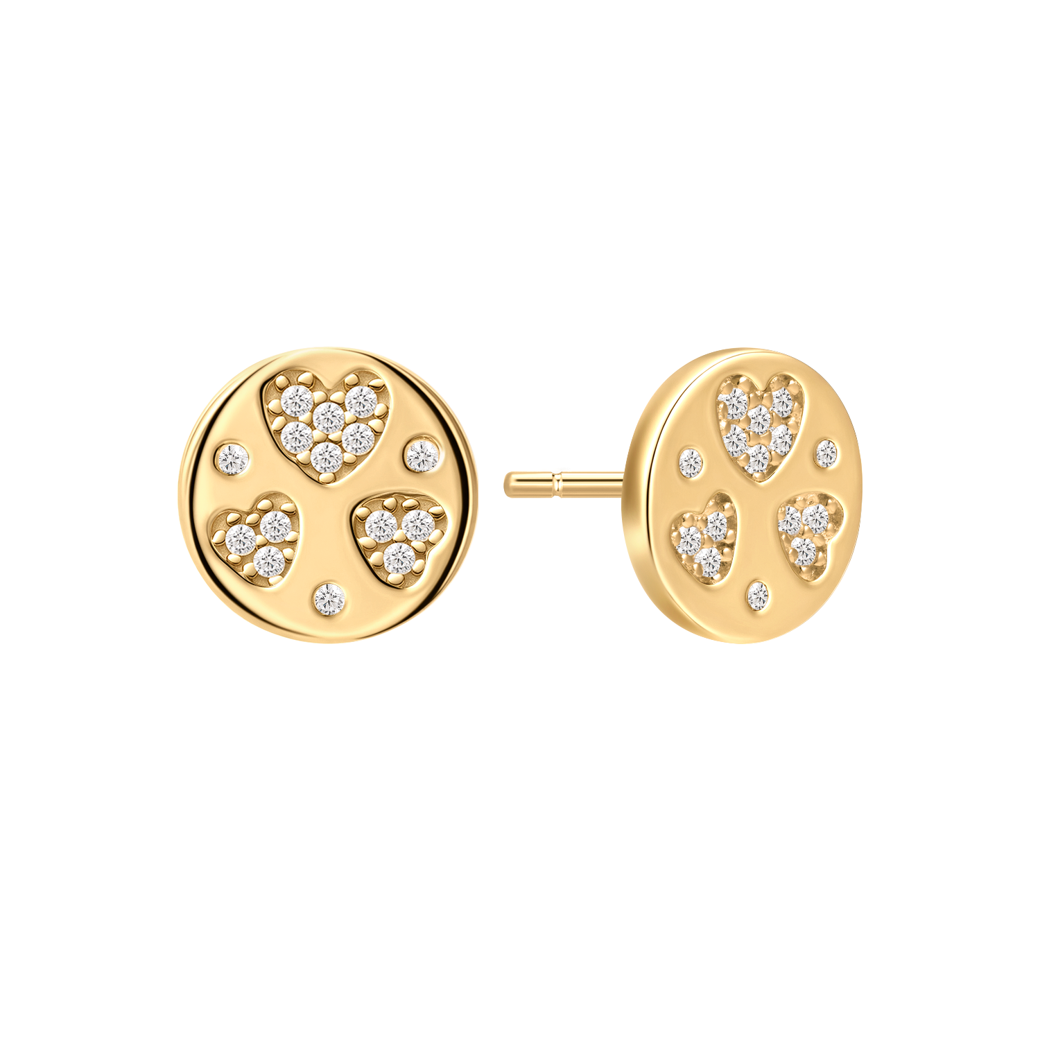 Sølvforgyldt ørestikker fyldt plade med 3 hjerter og syntetiske cubic zirconia.