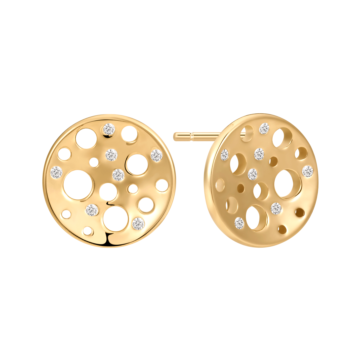 Sølvforgyldt ørestikker cirkel med huller og syntetiske cubic zirconia.