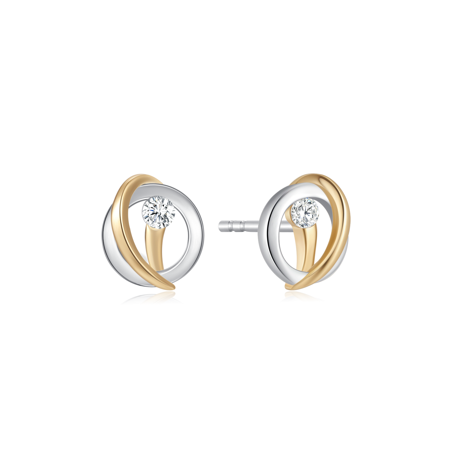 Sølvforgyldt ørestikker rhodineret cirkel med forgyldt streg og en syntetisk cubic zirconia.