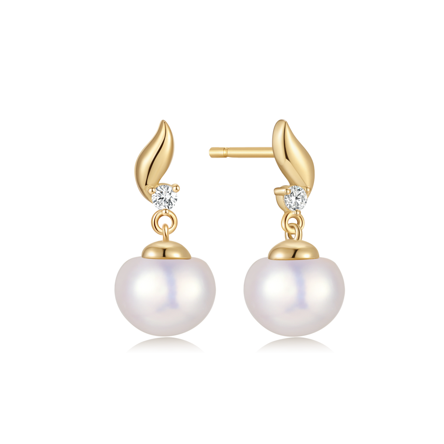 Sølvforgyldt ørestikker snoget med syntetiske cubic zirconia og en ferskvandsperle.