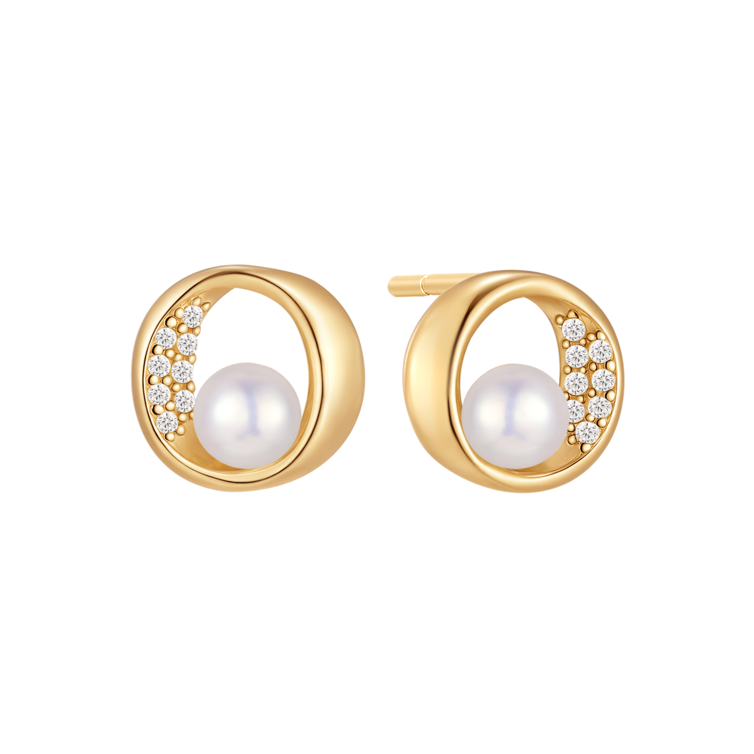 Sølvforgyldt ørestikker oval med syntetiske cubic zirconia og ferskvandsperle.