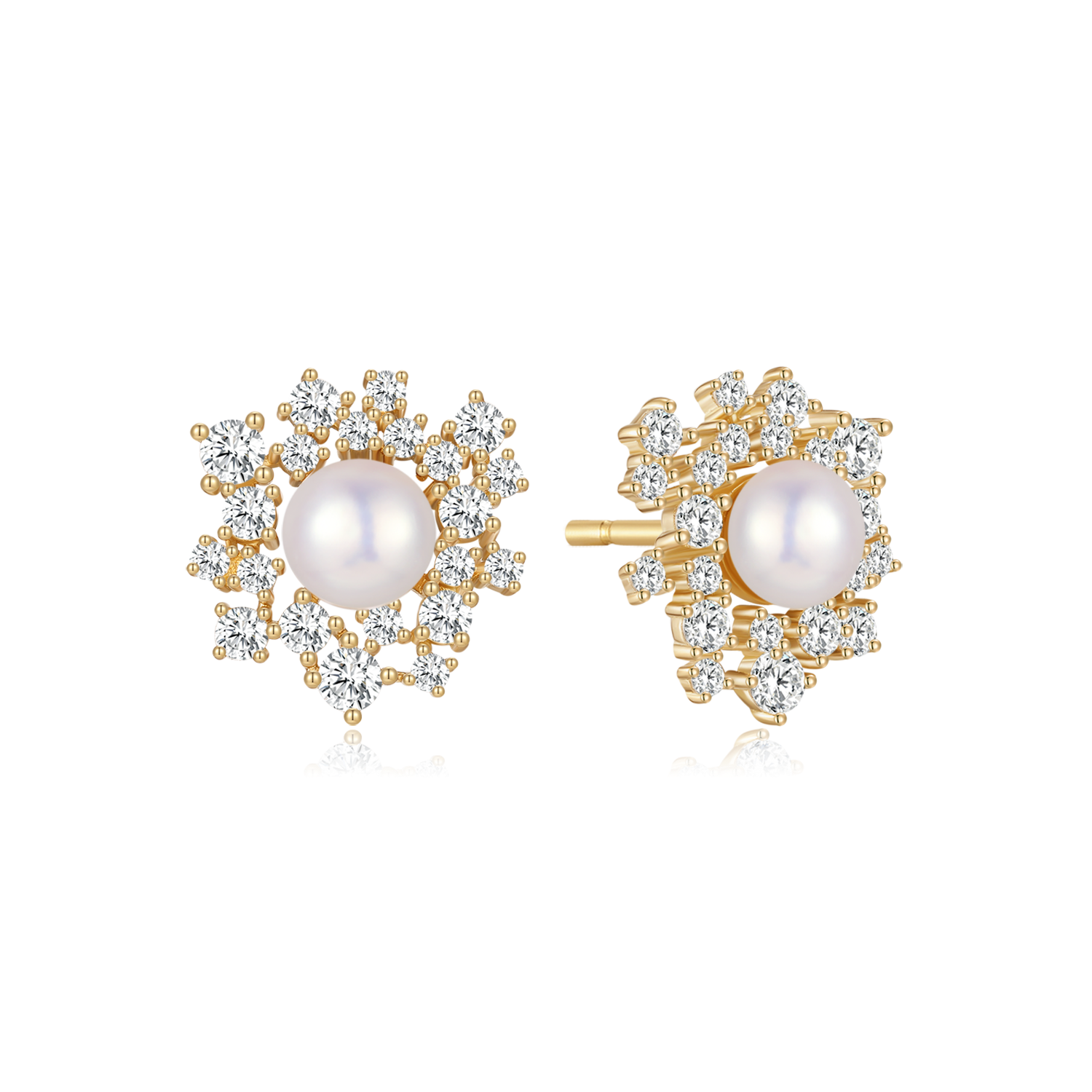 Sølvforgyldt ørestikker blomst med en ferskvandsperle og syntetiske cubic zirconia.