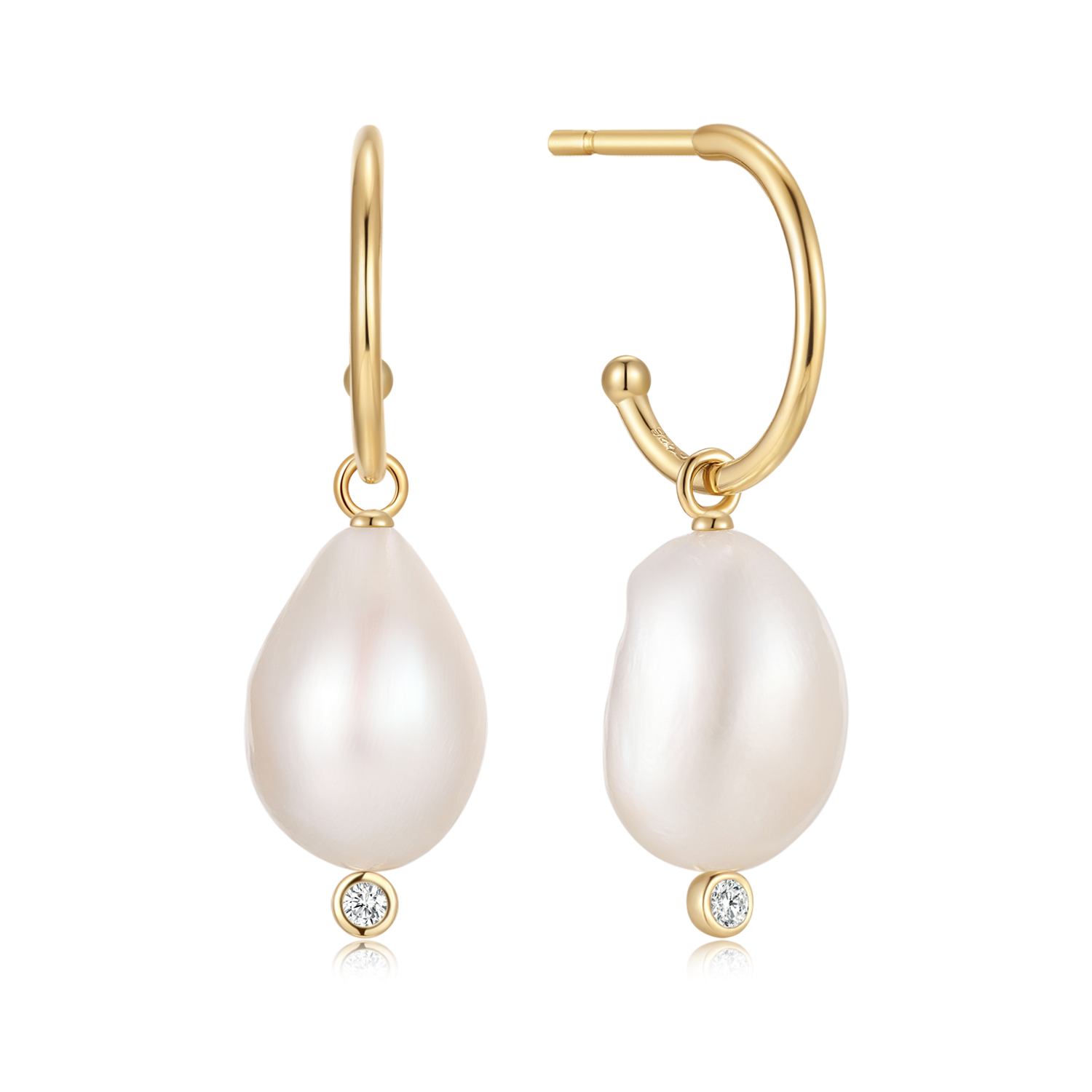 Sølvforgyldt ørestikker halv creol med en ferskvandsperle som hænger løs i bunden. Perlerne er naturlige og derved ikke ens.