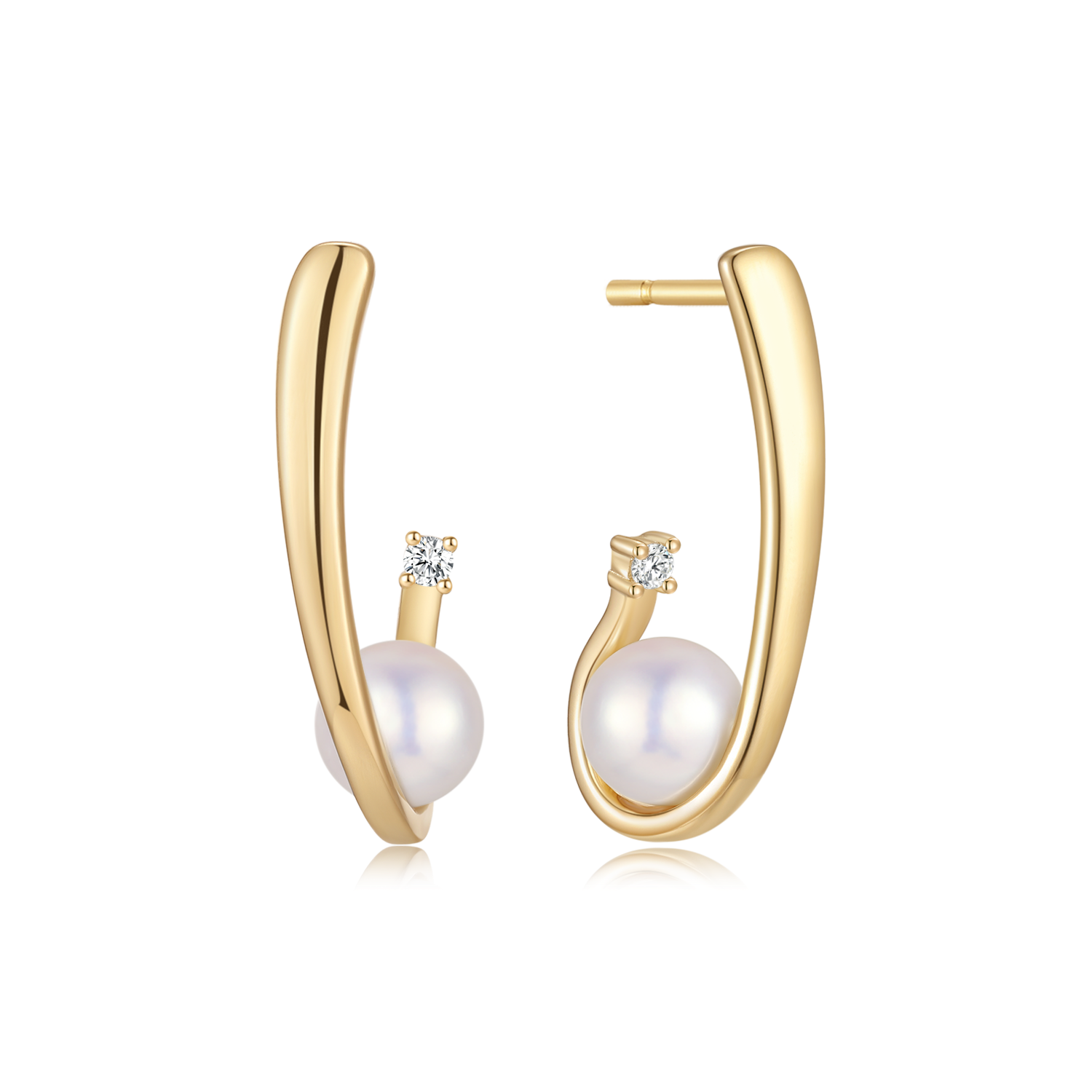 Sølvforgyldt ørestikker aflang buet pind med ferskvandsperle og en syntetisk cubic zicornia.