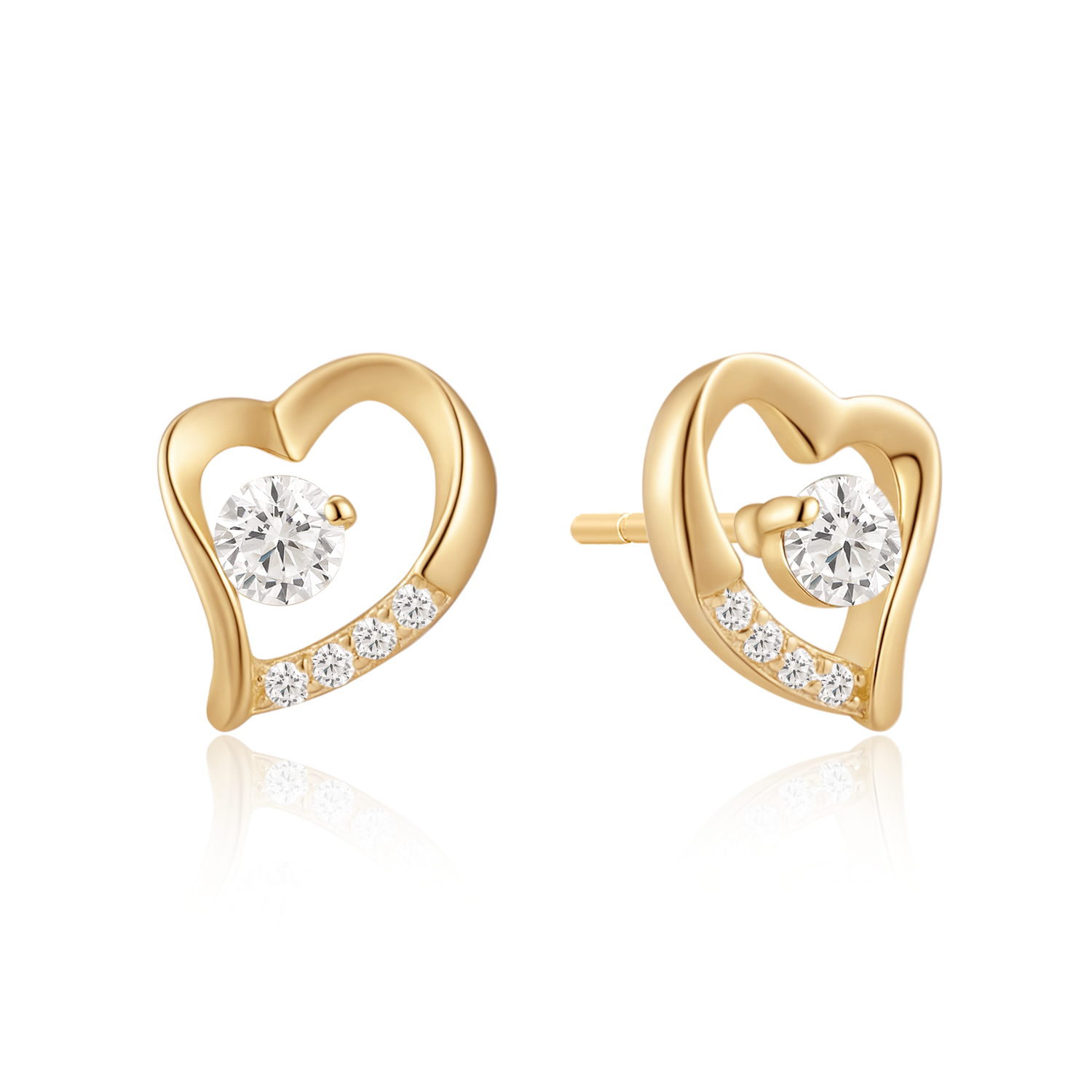 Sølvforgyldt ørestikker skæv hjerte med syntetiske cubic zirconia.