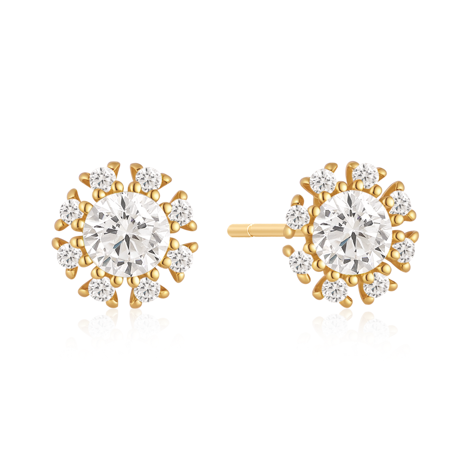 Sølvforgyldt ørestikker blomst med syntetiske cubic zirconia.