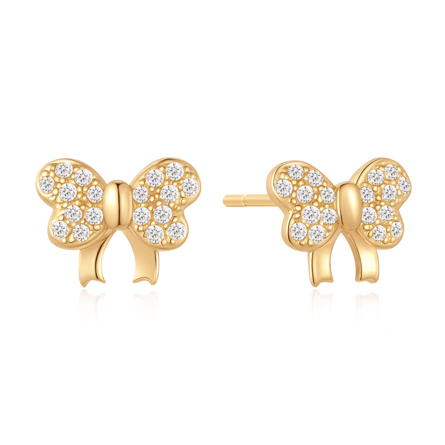 Sølvforgyldt ørestikker sløjfe med syntetiske cubic zirconia.
