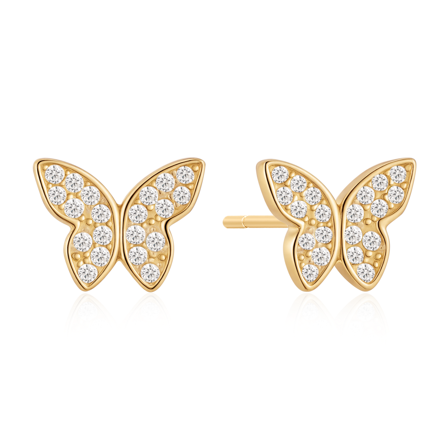 Sølvforgyldt ørestikker sommerfugl med syntetiske cubic zirconia.