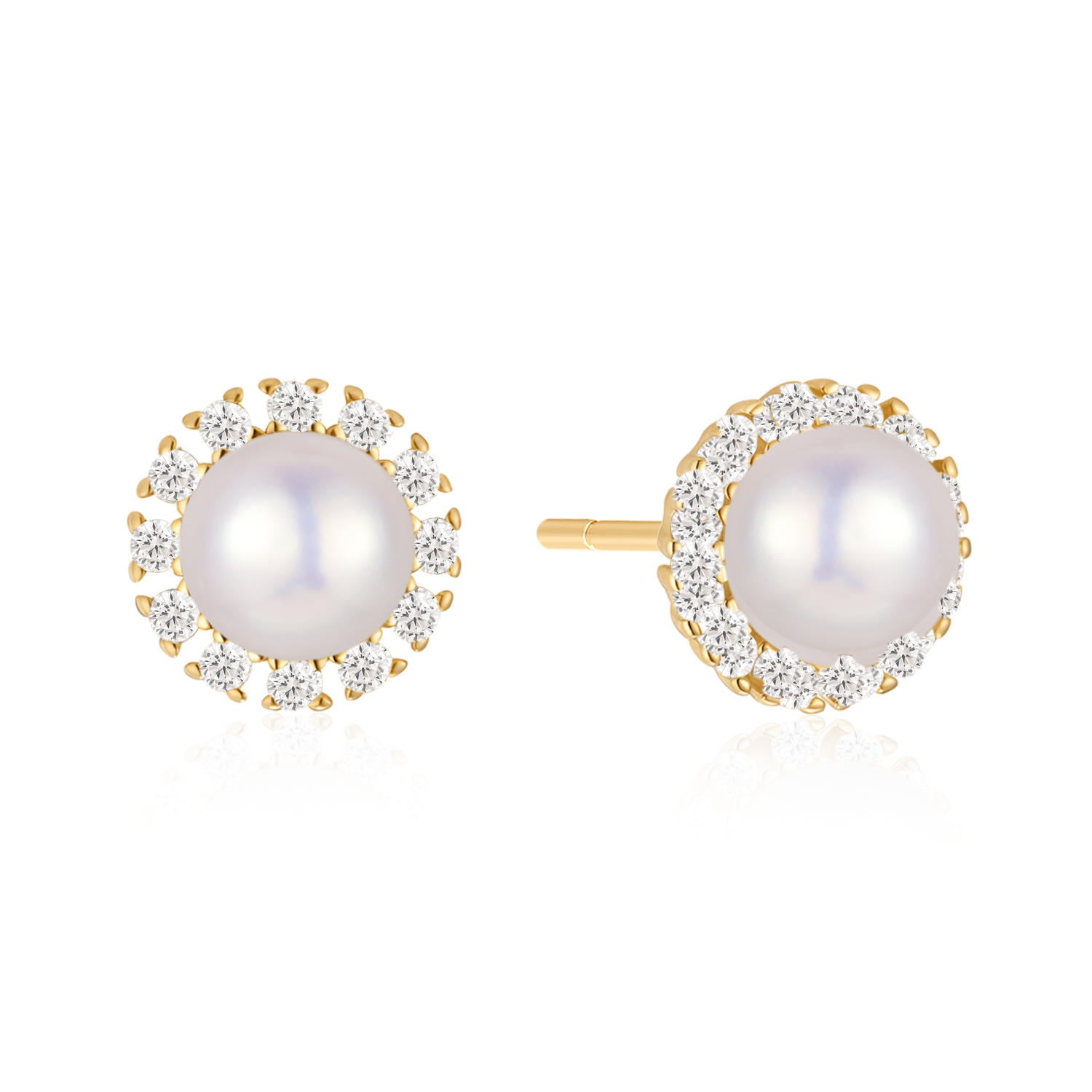 Sølvforgyldt ørestikker cirkel med ferskvandsperle og syntetiske cubic zirconia .