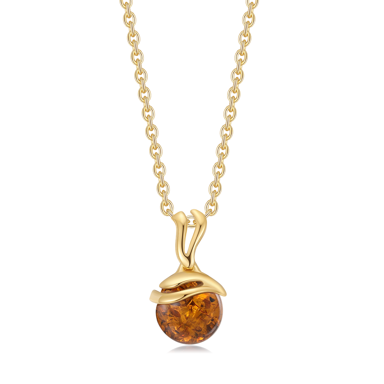 Sølvforgyldt vedhæng rav i rund kugle.